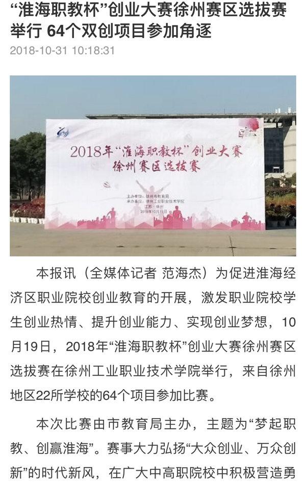 为促进淮海经济区职业院校创业教育的开展,激发职业院校学生创业热情、提升创业能力、实现创业梦想,10月19日,2018年“淮海职教杯”创业大赛徐州赛区选拔赛在leyu·乐鱼(中国)官方网站举行,来自徐州地区22所学校的64个项目参加比赛。