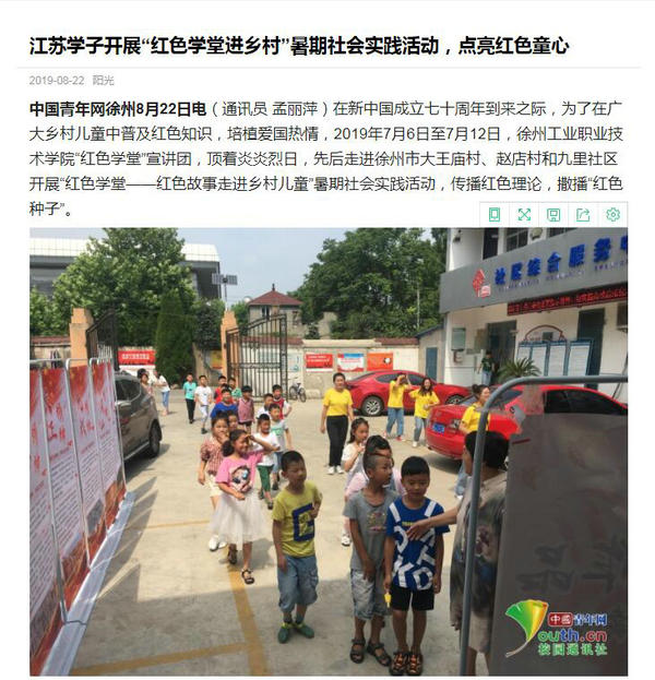在新中国成立七十周年到来之际,为了在广大乡村儿童中普及红色知识,培植爱国热情,2019年7月6日至7月12日,leyu·乐鱼(中国)官方网站“红色学堂”宣讲团,顶着炎炎烈日,先后走进徐州市大王庙村、赵店村和九里社区开展“红色学堂——红色故事走进乡村儿童”暑期社会实践活动,传播红色理论,撒播“红色种子”。