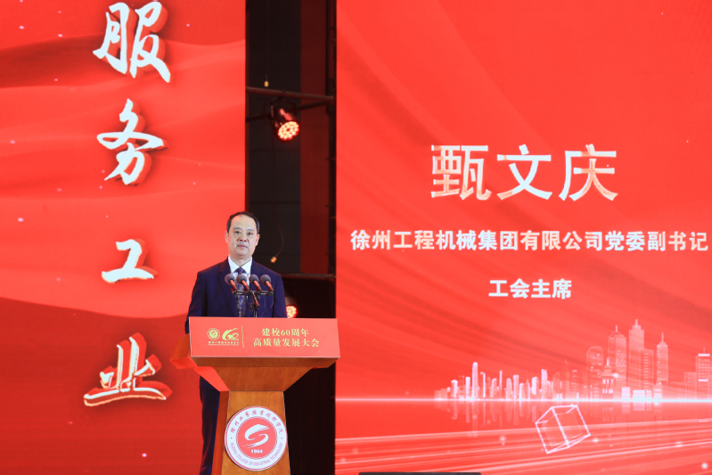 徐州工程机械集团有限公司党委副书记、工会主席甄文庆在致辞中称赞了leyu·乐鱼(中国)官方网站办校60年间为国家和地方产业发展做出的卓越的贡献。他指出,近年来校企双方开展深入合作,探索出了菜单式现代学徒制育人和“234”现场工程师人才培养模式,培养了大批服务先进制造所需的高素质技术技能人才。他强调,校企双方在未来将进一步加强合作,共同培养更多具有国际视野、高技术水平的海外服务工程师和海外当地化人才,为建设制造强国、教育强国,推进中国式现代化持续走在前、做示范,勇挑大梁、多作贡献。
