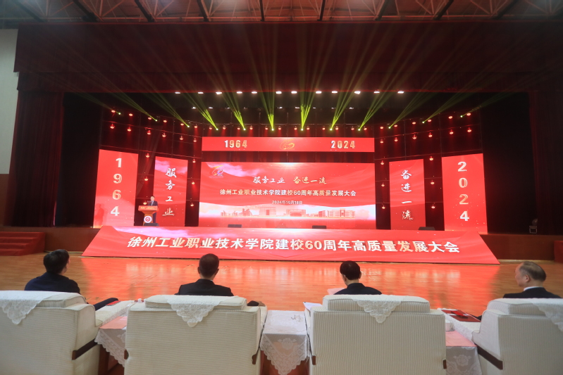 守正创新六十载,匠心逐梦工院人。10月18日上午,我校“服务工业 奋进一流”建校60周年高质量发展大会在体育馆隆重召开。江苏省委教育工委副书记、省教育厅党组成员潘漫,徐州市委常委、组织部部长戴敏捷,全国石油和化工职业教学指导委员会主任于红军,来自政府、兄弟院校、行业、企业、媒体等各个领域的领导、嘉宾、校友、退休教职工及师生代表齐聚一堂,共同庆祝学校建校60周年,共话学校未来发展。大会由校长鲍桂楠主持。