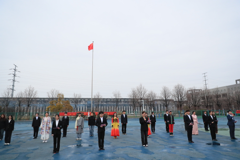 随着党委副书记李红宣布升旗仪式开始,现场师生庄严肃立,共唱国歌,注视国旗冉冉升起。