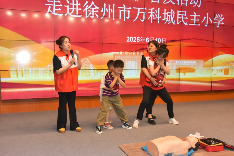 为深入推进应急救护知识进校园,提升青少年自救互救能力,6月10日,我校大学生红十字协会联合党外知识分子联谊会走进徐州市万科城民主小学,为300余名师生开展了一场生动的以“小手拉大手·急救护童行”为主题的应急救护普及活动。