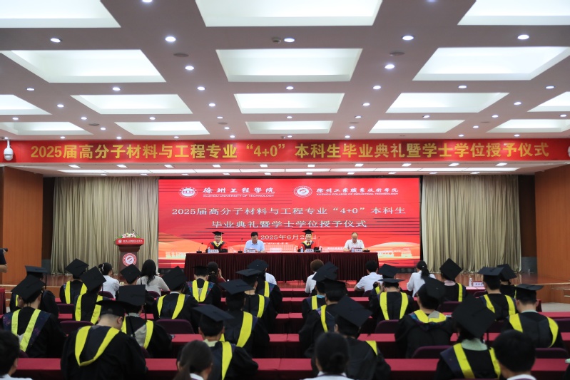 6月22日,我校2025届高分子材料与工程专业“4+0”本科生毕业典礼暨学士学位授予仪式在图书馆报告厅隆重举行。徐州工程学院材料与化工学院党委书记胡美丽、材料与化工学院院长庄文昌,我校党委委员、组织部部长乔向东出席活动,本科生院全体师生参加了活动。活动仪式由本科生院院长兼直属党支部书记肖亚杰主持。