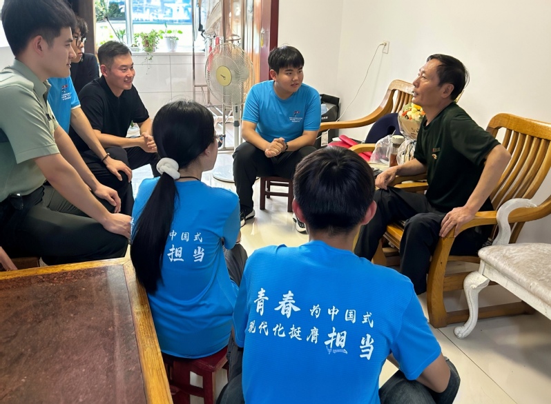 在徐州市鼓楼区退役军人事务局的大力支持与精心安排下,实践团队首先来到琵琶街道李沃社区,叩响了退役老兵赵长江的家门。“1979年那会,我驾驶着汽车跟随着大部队穿越敌占区……”坐在简朴的客厅里,赵老目光炯炯,思绪仿佛瞬间回到了那炮火纷飞的岁月。“一声炮响,我耳朵开始流血,然后就听不见了,当时就一个念头:豁出这条命,也得把兄弟们安安全全送到!”这穿越四十余载的嘶吼,在安静的客厅里炸响,让记录的学生指尖发颤,仿佛亲历那生死时速的钢铁洪流。硝烟未散尽,信念铸成山。告别赵老,实践团队转赴丰财街道下淀社区的国防教育馆,玻璃展柜折射的冷光中,退役老兵吴作连挺直脊梁静立。“当兵是我这辈子最难忘的事!”讲述完自己的参军经历后,吴老深情地说道,眼中闪烁着坚毅的光芒。最后,吴老语重心长地勉励大家:“一定要勤奋学习、刻苦钻研、报效国家!”这番质朴而饱含期望的话语,深深触动了现场的每一位队员。