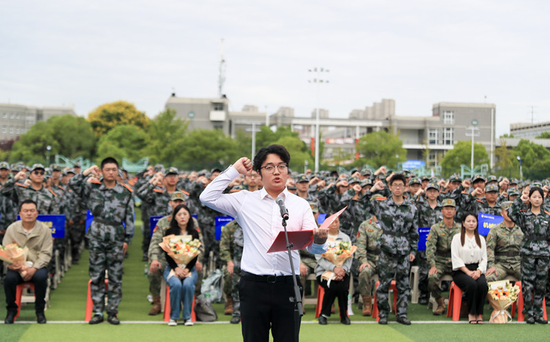 江苏省职业院校创新创业省赛一等奖获得者、工商管理学院市场营销2301班刘茗同学领誓,全体2025级新生举起右拳,进行集体入学宣誓。同学们铿锵有力的誓言,发出了“青春有为、强国有我”的最强音。他们的眼神中有期待、有激动,也有肩负起责任的沉稳和坚定。
