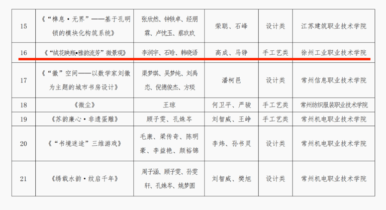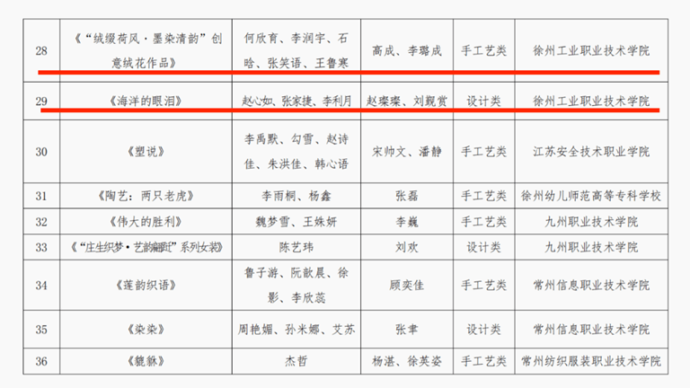 近日,首届“艺韵匠心”江苏省高职院校学生创意作品展圆满落幕。我校学生凭借扎实的专业素养、出色的创新实践能力以及审美积淀,在展评中表现突出,共有4件参赛作品分获不同奖项,不仅充分展现了学校在手工艺教学与实践领域的育人实力,更彰显了学校美育工作的丰硕成果。