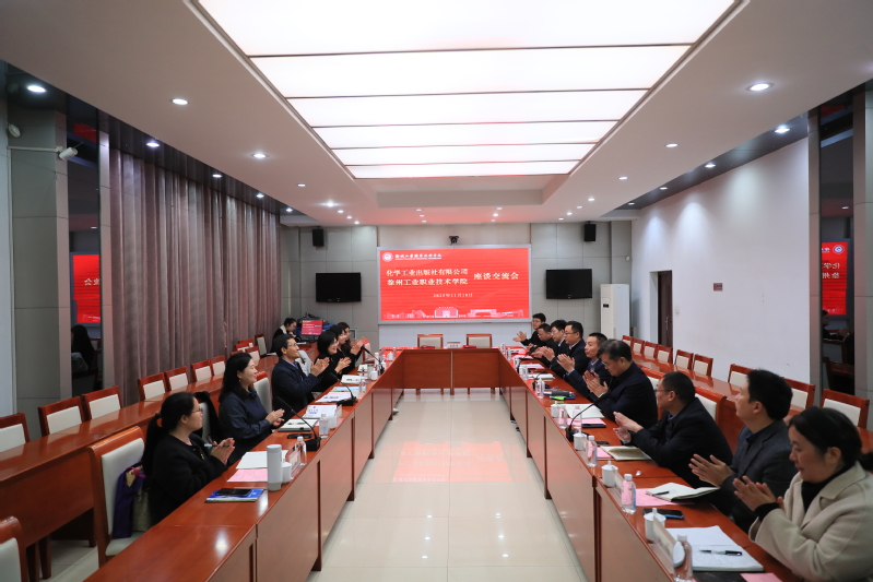 11月10日,中国化工教育协会会长、化学工业出版社党委书记、社长郎红旗带领机电教材分社副社长宋辉等一行6人莅临我校,开展教材建设工作调研。校长鲍桂楠、副校长张芳儒、教务部、双高办及相关二级学院负责人参加会议。