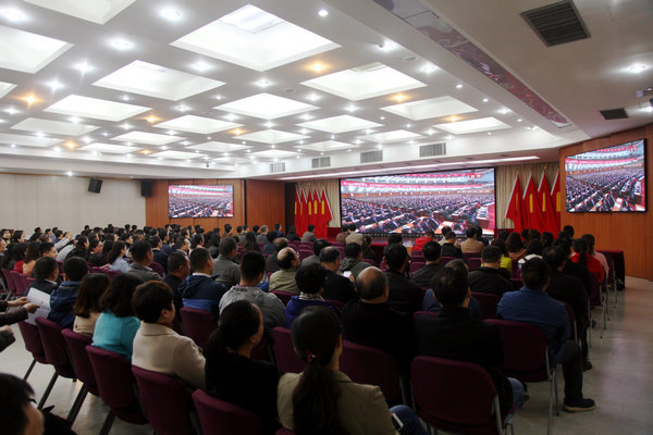 10月18日,举世瞩目的中国共产党第十九次全国代表大会在北京隆重举行。我校高度关注十九大的召开,组织师生在图书馆报告厅集中收看大会直播;部分师生自发在教室、办公室、党员活动室、学生宿舍等地通过电视、网络、广播等多种方式收听收看,认真学习领会大会精神。