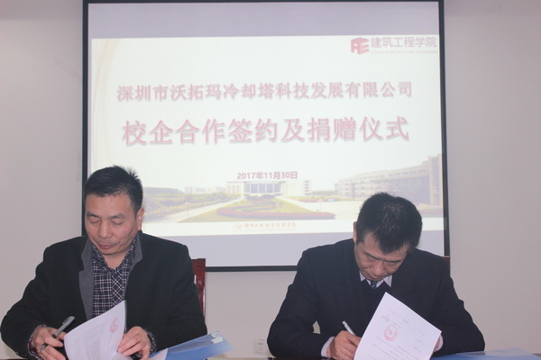 11月30日上午,我校与深圳沃拓玛冷却塔科技有限公司校企合作签约及捐赠仪式在B18-1219会议室举行,我校副院长鲍桂楠、沃拓玛公司董事长彭也出席了活动,活动由建筑工程学院党总支书记李素婷主持。