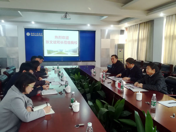 12月10日上午,值全国思想政治工作会议召开一周年之际,教育部思想政治工作司副司长张文斌莅临我校,就思想政治工作进行调研。调研座谈会在我校行政楼三楼会议室召开,党委书记祝木伟、院长张登宏、党委副书记李红,党政办、党委组织部、党委宣传部、党委学工部、思政部、团委等部门负责人参加座谈会。