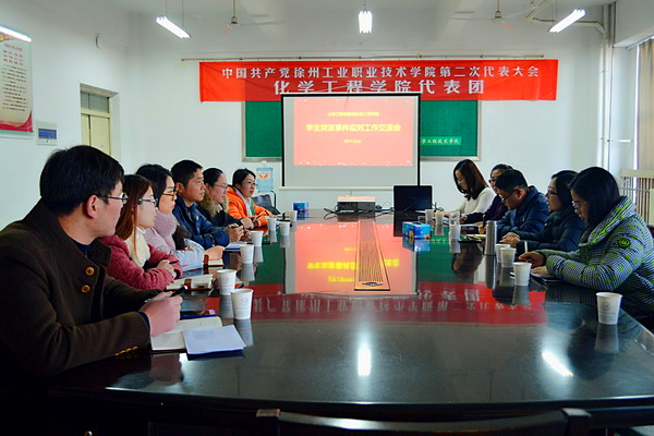 为了强化学生安全工作意识,规范学生安全工作管理,提高辅导员对学生突发事件的应对和处理能力。化工学院与机电学院在12月8日下午共同举办了学生突发事件应对与处理工作交流会。化工学院与机电学院学管副院长和辅导员老师参加了此次交流会。