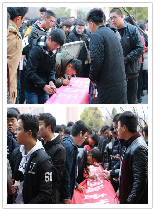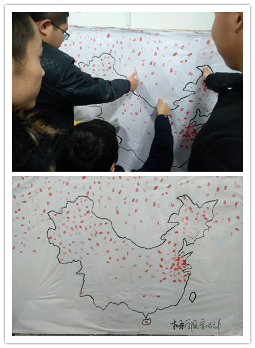 在图书馆门口,学生会成员为同学们详细讲解了国家公祭日的历史渊源,来往同学纷纷停下脚步,在“牢记历史,勿忘国耻,奋发图强,圆梦中华”的横幅上郑重写下名字,铮铮签名寄托了自己对三十万死难同胞的哀思。在中国版图上,同学们手蘸红色印泥印下属于中华儿女的血脉印记,表达了对和平的祈愿和对祖国的热爱。