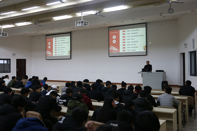 12月15日下午,机电工程学院党总支在B18-202阶梯教室面向全体在校学生宣讲党的十九大精神,宣讲会由校宣讲团成员机电学院党总支书记孙金海同志主讲。