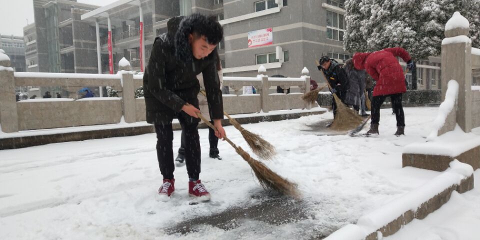 雪情就是命令,1月4日清晨,青年志愿者们从四面八方聚集到扫雪地点,手拿铁锹、扫帚等扫雪工具,扫雪、推雪、铲雪,个个奋勇当先,热情满怀,一幅热火朝天的场面。在材料工程学院同学们热火朝天、富有激情的一番劳动后,广场上出现了七、八个小雪堆,而本已结冰、敷上厚厚一层雪的路面重新变得易于行走。