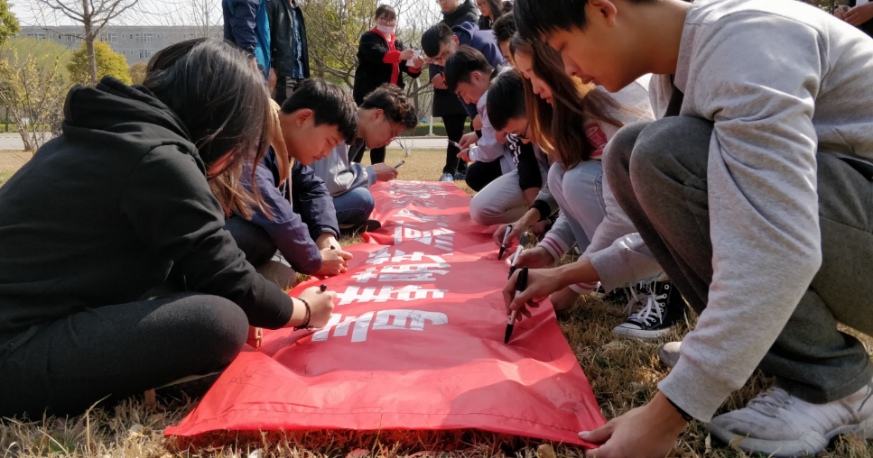 芳林新叶催陈叶,流水前波让后波。活动尾声,材料青年们纷纷在条幅上书写下春天的期望,“学业进步、宿舍有爱、觅得佳人”朴素而真挚的愿望,绽放在新时代的春风里,在橡胶品格的汗水中熠熠闪光。