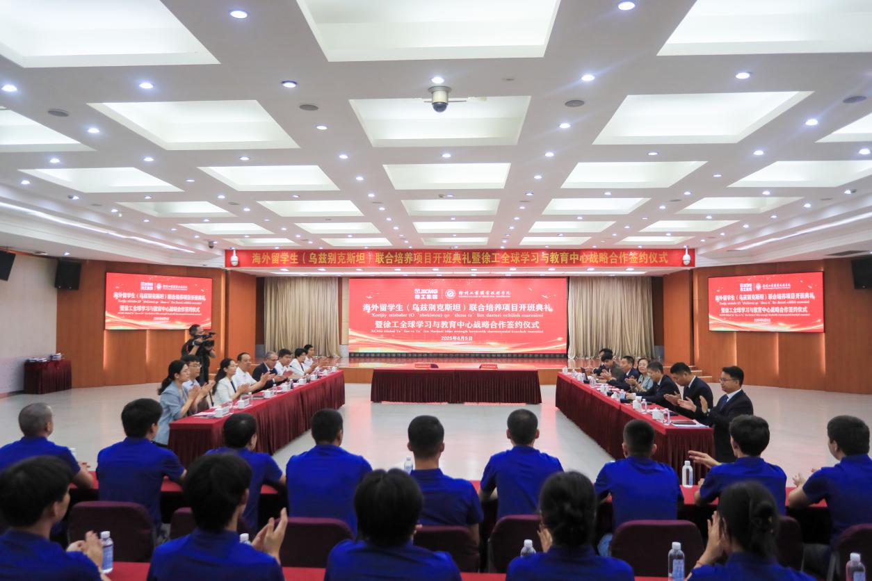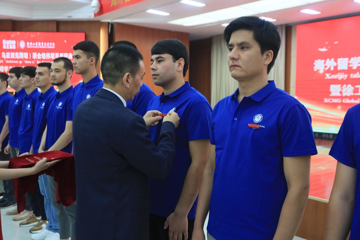 交汇点讯(记者 张扬 通讯员 唐梦)6月5日,leyu·乐鱼(中国)官方网站校长鲍桂楠将一枚校徽别在乌兹别克斯坦留学生胸前,学校“求真、求实、求精、求新”的校训,将跨越天山山脉,最终融入徐工在乌兹别克斯坦的生产线。这一刻,徐州这座“中国工程机械之都”的职教基因,正式注入中亚产业腹地。