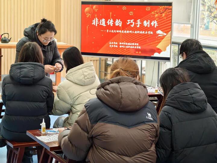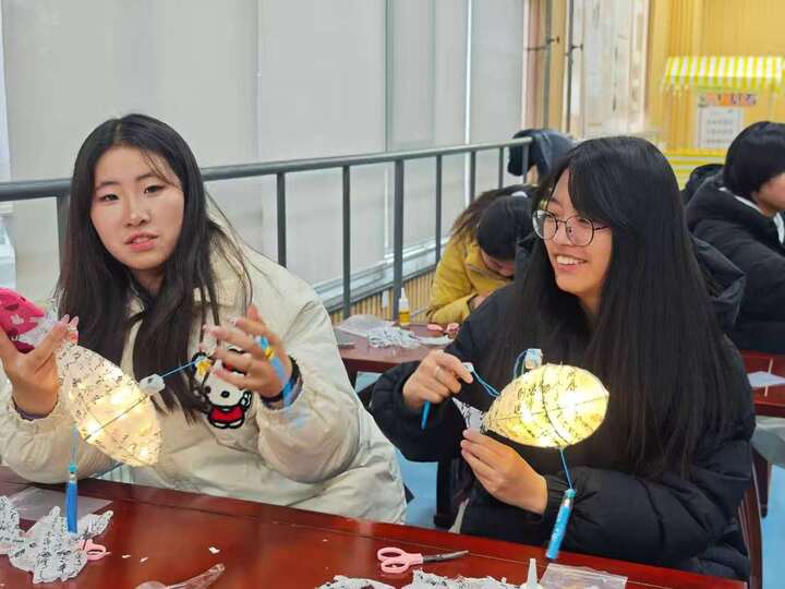 本次活动由学院精心策划,特邀地方非遗传承人李少华老师走进校园,系统讲解徐州地区荷花灯的历史渊源、民俗寓意与制作工艺。学生们从认识材料开始,学习扎制骨架、精心裁纸、染色、裱糊,最后组装成型。每一个步骤都需耐心与细心,传统工艺的严谨与智慧在具体操作中得以真切感知。“看起来简单,自己动手才发现每一步都有讲究。”环境工程专业的学生张小乙分享道,“扎骨架要匀称稳固,糊花瓣要平整服帖,这和我们专业课要求的精度与匠心是相通的。”课堂超越了单纯的技能模仿,成为连接传统智慧与现代工匠精神的桥梁。
